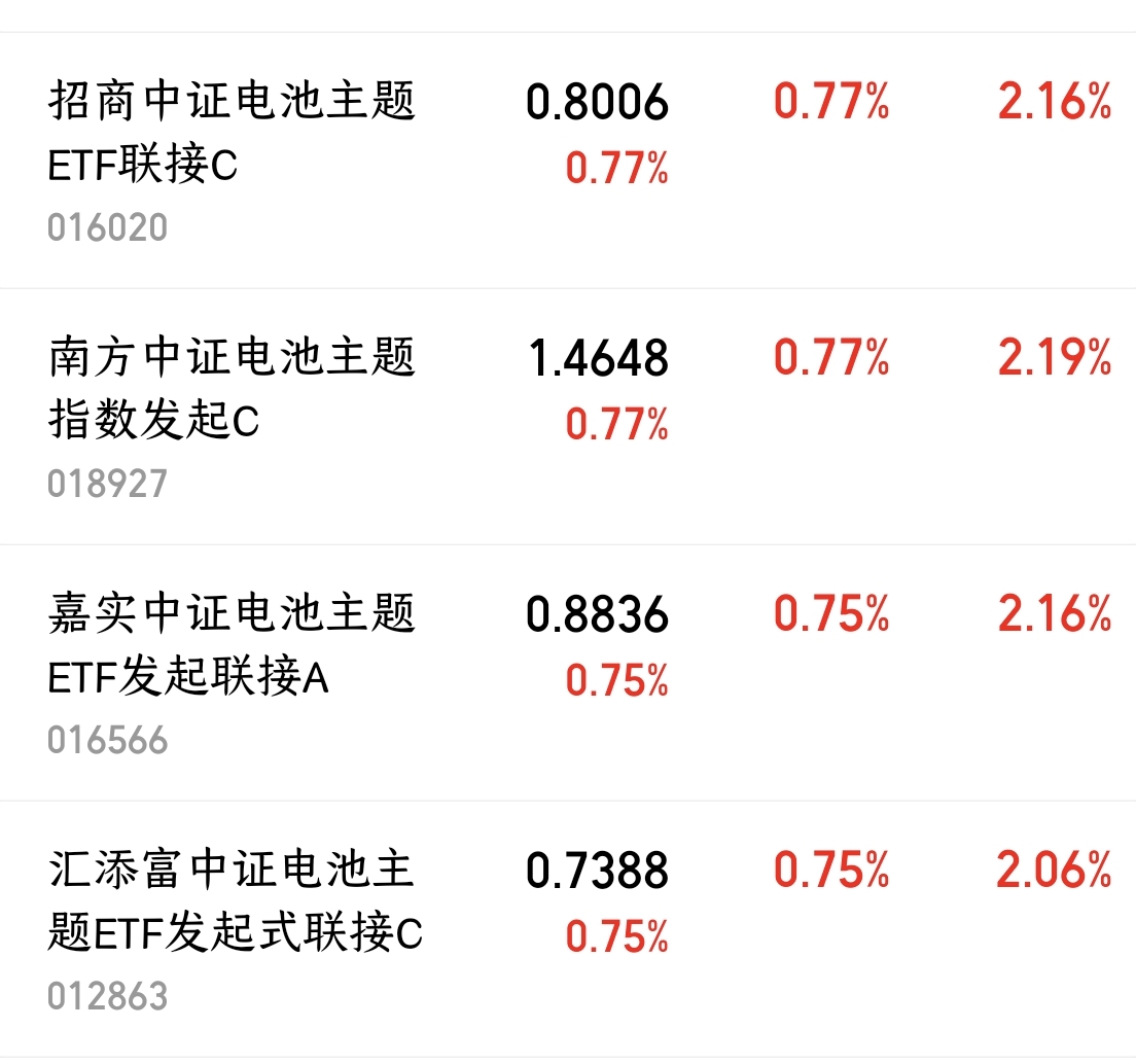 $汇添富中证电池主题ETF发起式联接C(OTCFUND|012863)$昨日上涨了0.75%