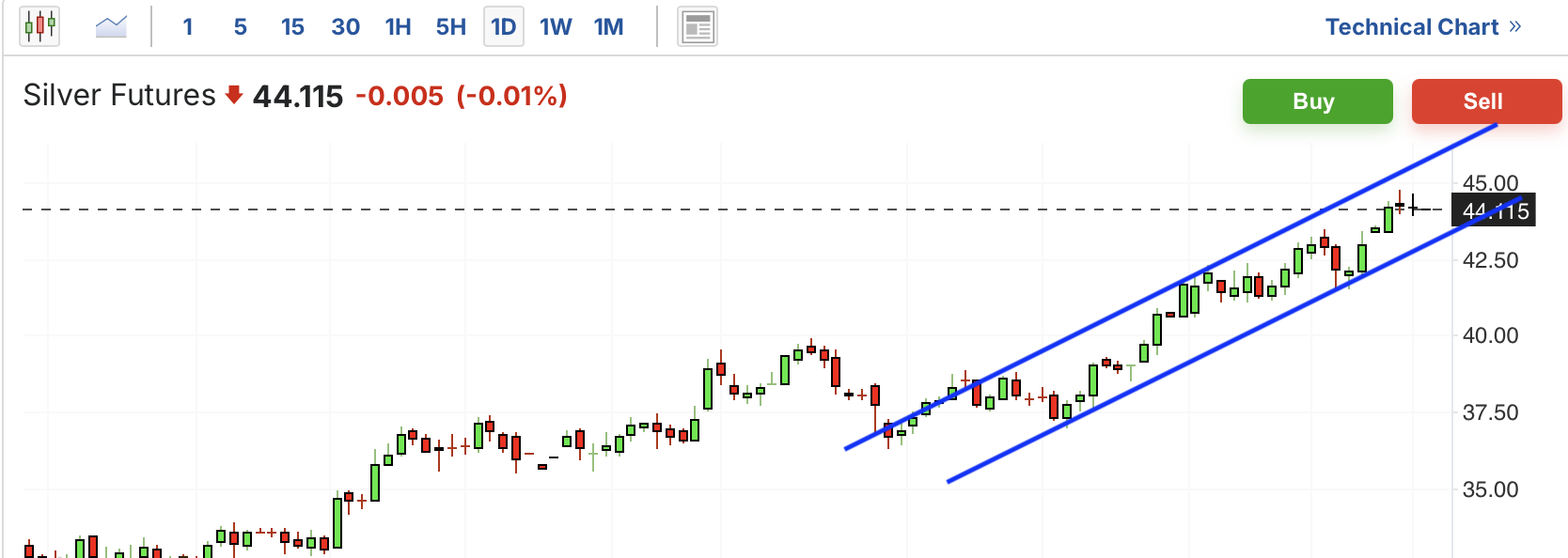 黄金和白银此前长时间盘整,最近突然拉升,突破关键压力位,进入上升通道中。前几日从关键通道支撑位止跌回升,这两日小幅回落,仍在通道中震荡上行。
