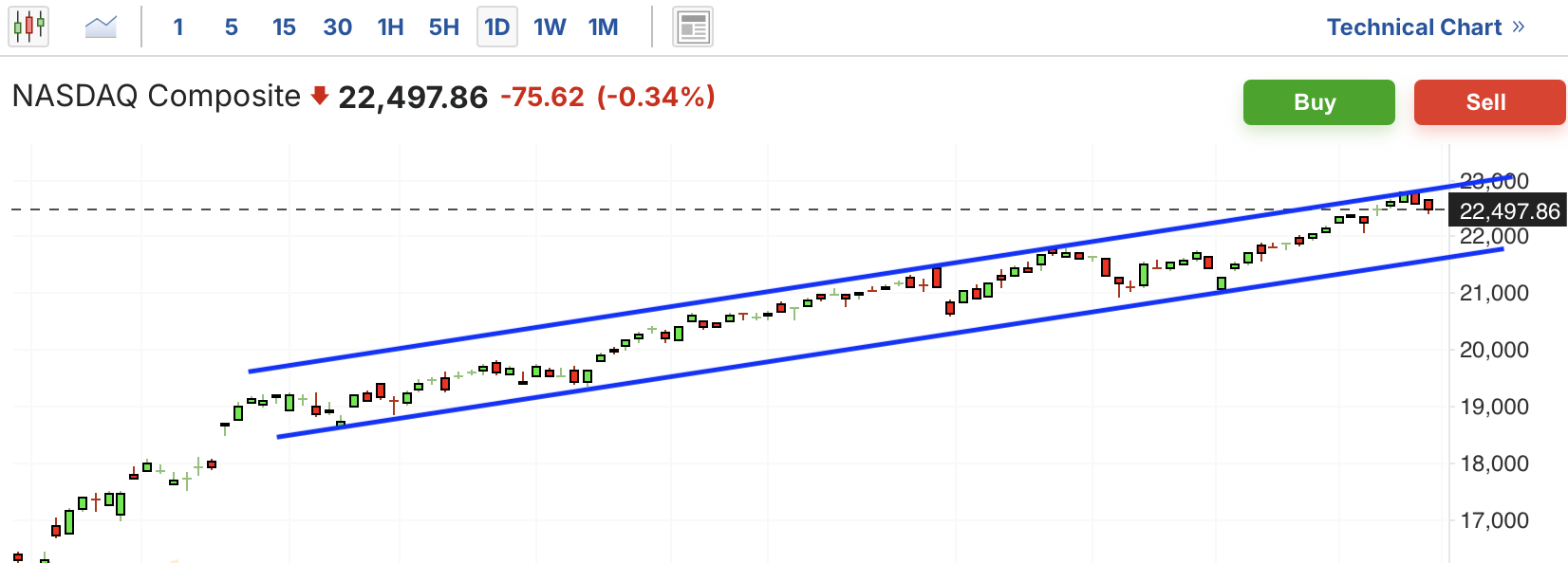 周三,美股三大指数继续小幅下滑,但没有改变上行趋势。纳斯达克近期进入上升通道,一直稳步上行,这两日受阻于通道压力位而回落,仍在通道中稳步上行。
