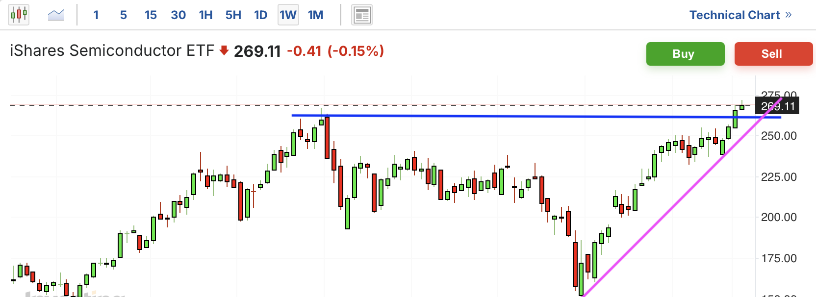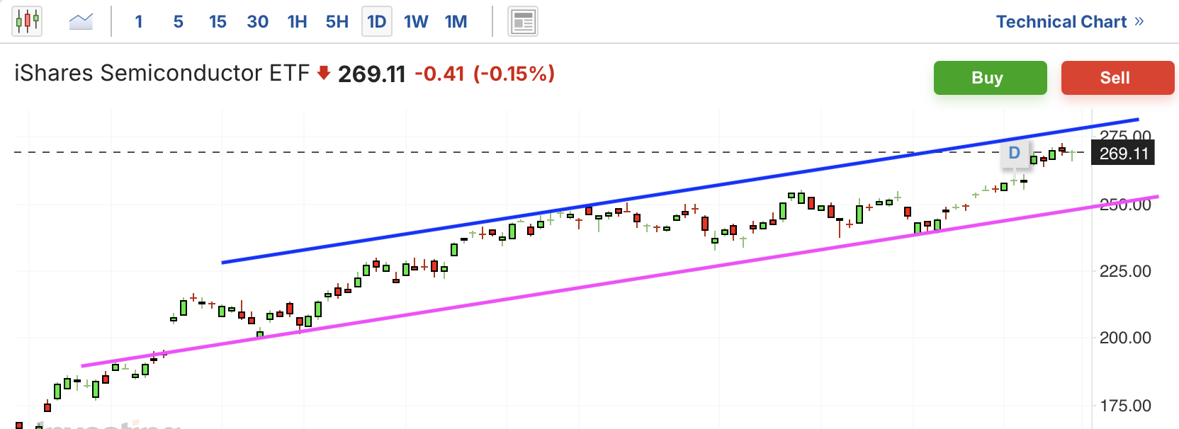 费城半导体最近突破最高点压力位,震荡上行中。短期进入上行通道,这两日虽然小幅回落,但没有改变上行趋势,仍在通道中稳步前行。