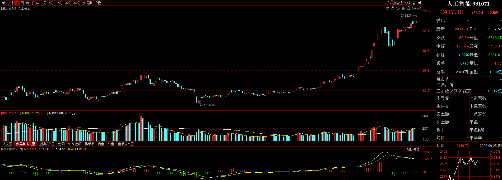 人工智能震荡走强,指数涨超2.5%,多头趋势完好,我会继续格局。