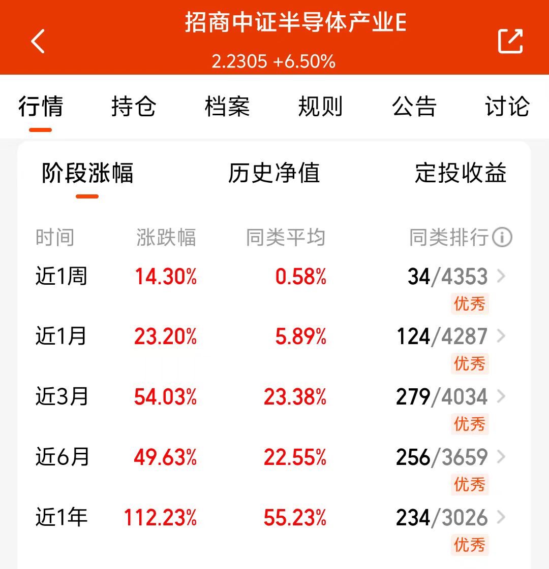 半导体近期表现不错,昨天大爆发,招商中证半导体产业C昨天大涨6.50%,本轮行情主要是存储涨价、AI扩容+非AI复苏,硅片需求提升导致部分硅片涨价,光刻机各种催化!$招商中证半导体产业ETF发起式联接C(OTCFUND|020465)$近一周涨了14.30%,近三个月涨了54.03%,长期看好这个方向,我打算分批加仓了!