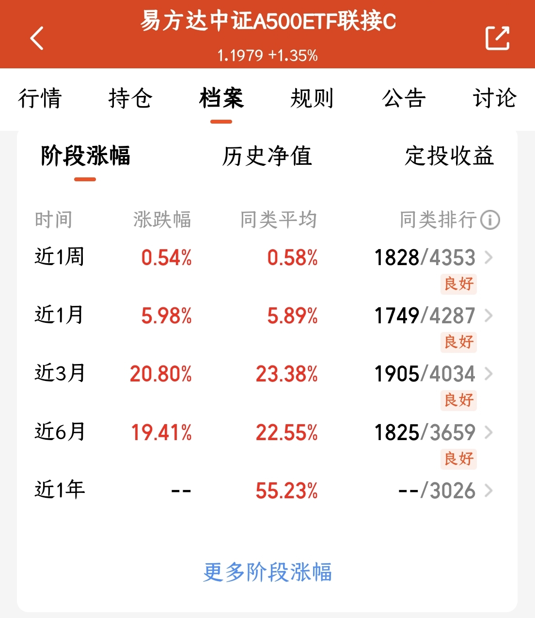 现在股市行情震荡,行业轮动加速,不少板块都高位了。而中证A500凭借均衡的行业布局成为理想的宽基底仓选择。该指数能有效锚定市场大势,适合大仓位配置以把握整体机会。$易方达中证A500ETF联接C(OTCFUND|022460)$今年以来涨幅近20%,跑赢多数主动操作策略,凸显宽基指数在震荡市中的配置价值。我们无需频繁调仓,通过持有优质宽基即可获得稳健收益,今天先加仓了!