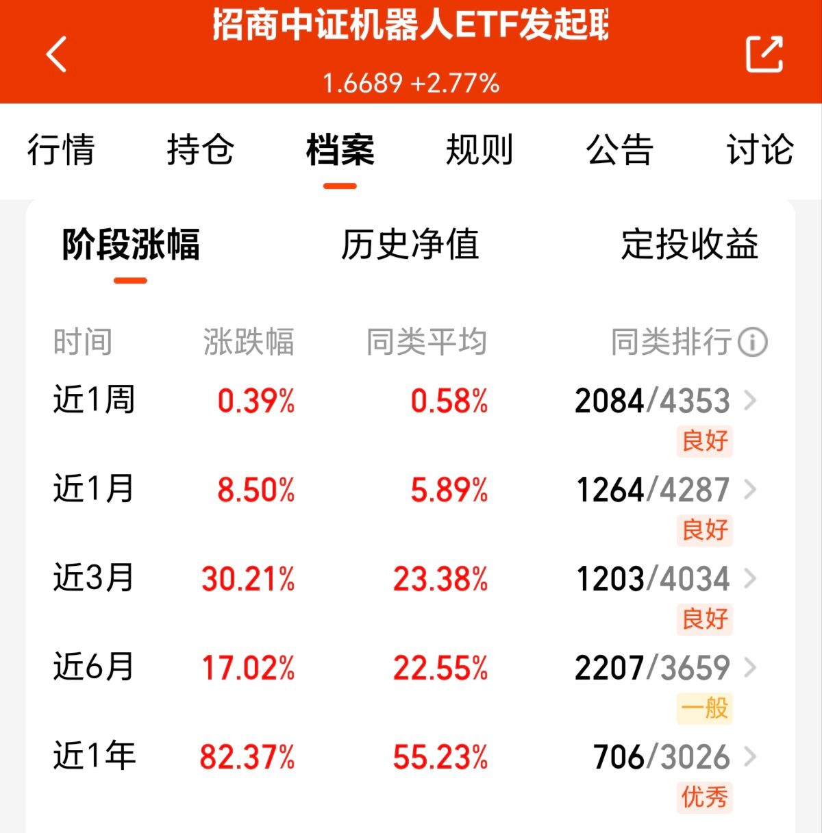 今日大盘行情再次火热不断,科技赛道更是领涨趋势,其中机器人板块又见利好,核心逻辑是特斯拉3代机+宇数第四季度提交IPO,此次催化利好不断,随着三代机发布后,使特斯拉量产确定性也进一步提高,从而推动机器人赛道收益创新高度,考虑到机器人后期的行情发展,我也准备布局一波$招商中证机器人ETF发起联接C(OTCFUND|020482)$持仓聚焦了机器人全产业链,近一年涨幅高达82.37%,业绩表现出色亮眼,希望可以抓住这波上涨机遇啦!