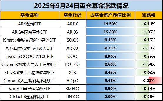 【重仓涨跌】根据基金2025年二季报披露,重仓基金中3只为“木头姐”凯茜伍德旗下聚焦于美股前沿科技的基金,合计占比达43.86%。