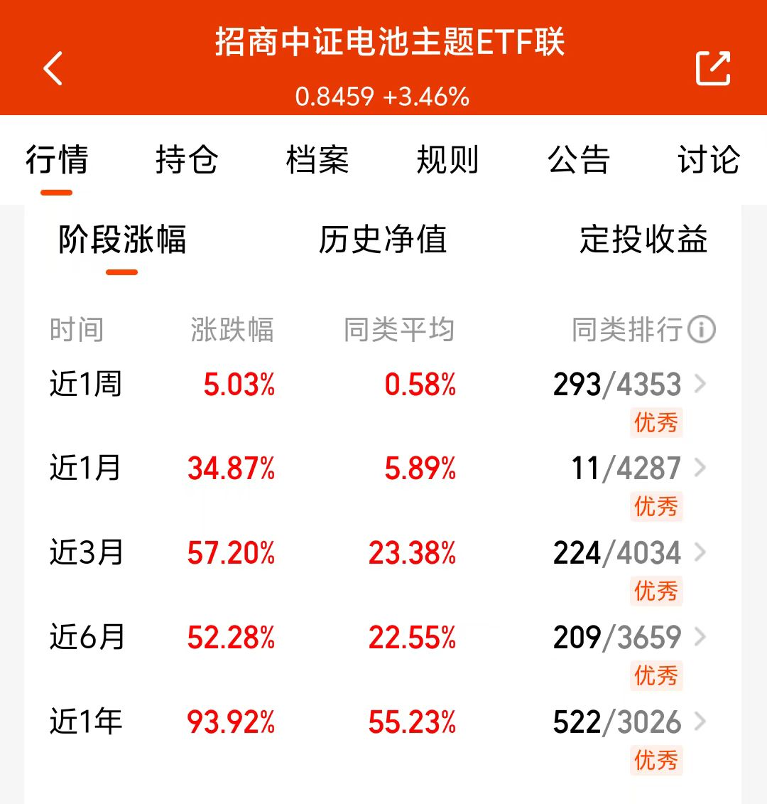 大盘今天继续上涨,电池近期涨了不少,主要是全球储能需求超预期,美国大储韧性、国内大储136号文后需求招标好于预期,数据中心和电价机制改革打开储能终局空间!宁德向供应链释放了26年1.1TWh的需求指引都是利好消息,$招商中证电池主题ETF联接C(OTCFUND|016020)$今天预估涨1.34%,近一年涨了93.92%。持仓固态电池占比超4成,储能占比超6成,长期看好这个方向,我准备上车了!