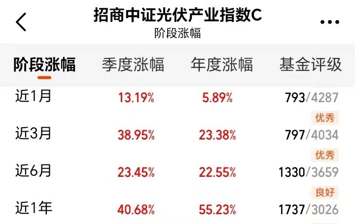 今日光伏板块表现活跃,光伏概念整体上涨 0.62%,中证光伏指数盘中上涨1.43%,板块延续反弹趋势。六部委加码“反内卷”推动价格企稳、中东市场15倍增长潜力释放,这是政策稳供给与新兴市场扩需求的双重支撑呀。$招商中证光伏产业指数C(OTCFUND|011967)$紧密跟踪板块趋势,覆盖龙头与成长标的,近一个月上涨13.19%,近一年上涨40.68%,长短期业绩优秀,在行业从“规模扩张”向“质量跃升”转型期,我觉得板块后市空间不小呢。