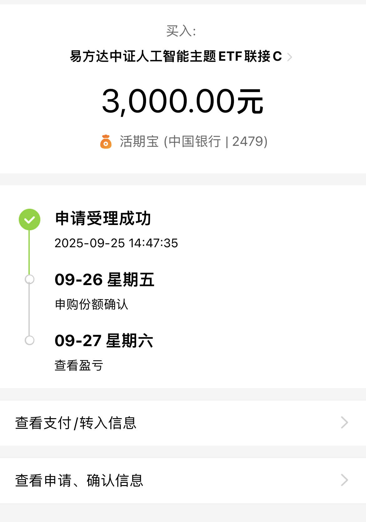 $易方达中证人工智能主题ETF联接C(OTCFUND|012734)$布局AI全产业链,业绩表现超亮眼:近一月涨15.20%、近三月涨59.44%、近一年涨123.59%,趋势和弹性都在线。趁板块势头正劲,我也打算加仓跟紧这波AI红利,稳稳把握全年主线机会。