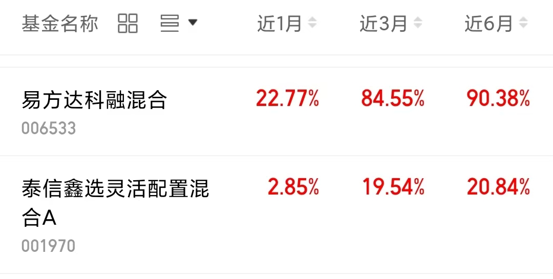 从今天的市场行情来看,只能说业绩好的基还是有原因的呀~相比配置单一赛道的基,多元配置的基反而走的更远,长期业绩更好~我看易方达-科融混合近1月收涨22.77%,近3月收涨84.55%在当前行情下长期业绩更优呀~现如今后续行情我还是很有信心的,期待表现继续发力哦~
