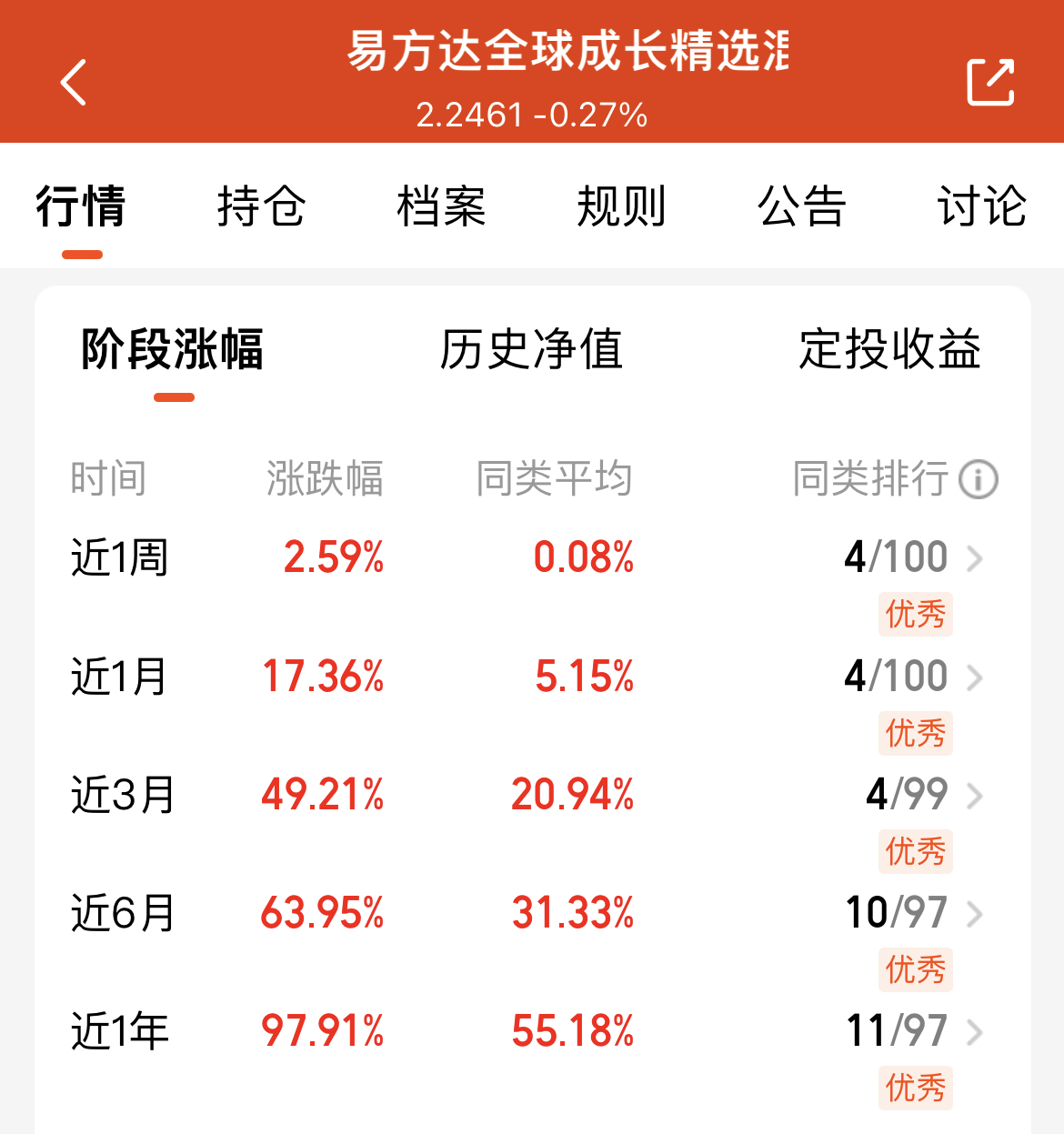 当下全球科技领域机会众多,但单押一个市场风险不小。我很看好$易方达全球成长精选混合(QDII)人民币C(OTCFUND|012922)$它有着全球科技布局的视野,能在美股布局AI、机器人等前沿领域,在A股布局算力等核心资产,在港股布局互联网巨头的AI应用。这种多市场的科技配置,让它能有效规避单一市场的波动,同时精准捕捉各市场的成长机遇,基金经理调仓灵活,能及时把握行业趋势,长期来看,它是分享全球科技成长的好选择。