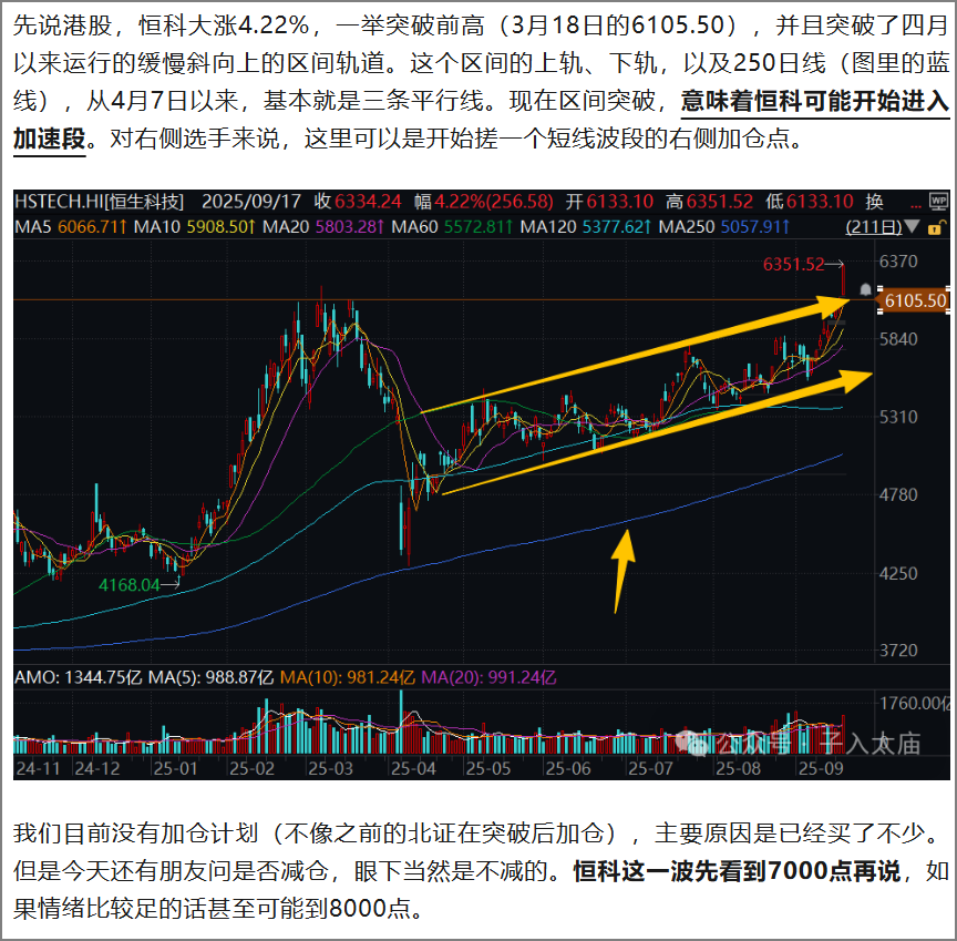今天(周四)港股冲高回落,我们再看一下9月17日盘后的文章《0阶导资金还是太多了》: