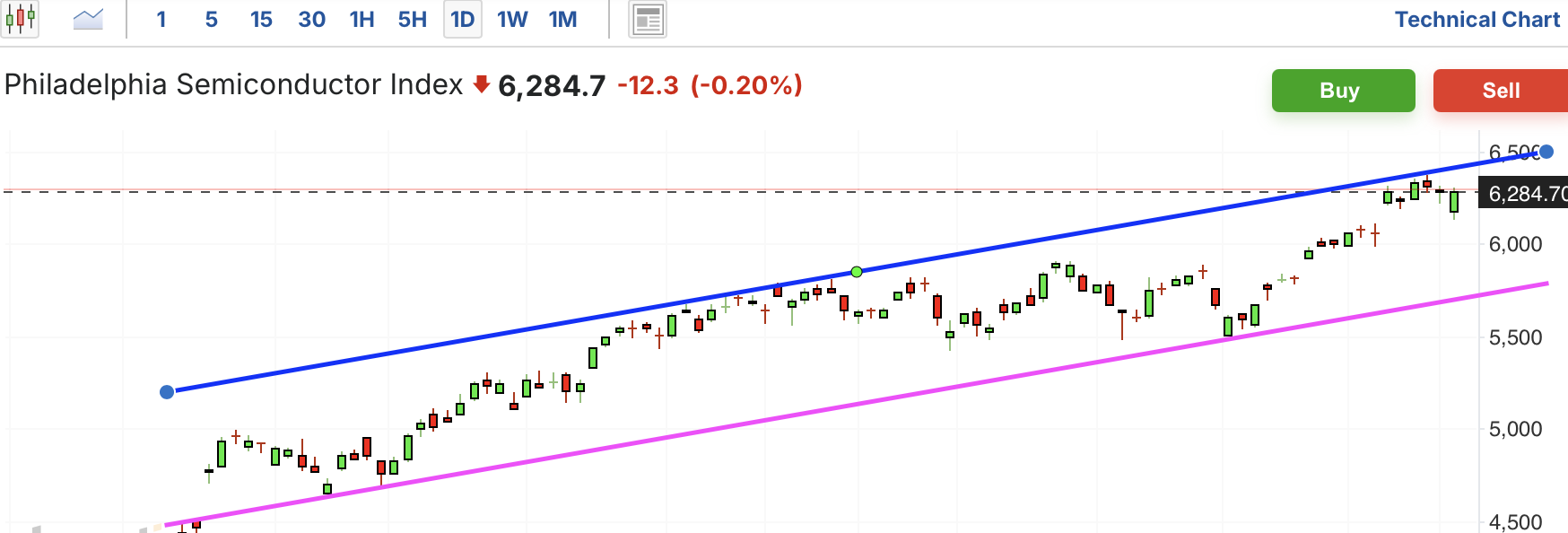 费城半导体最近突破最高点压力位,震荡上行中。短期进入上行通道,这几日受阻于通道压力位而回落,也没有改变上行趋势。