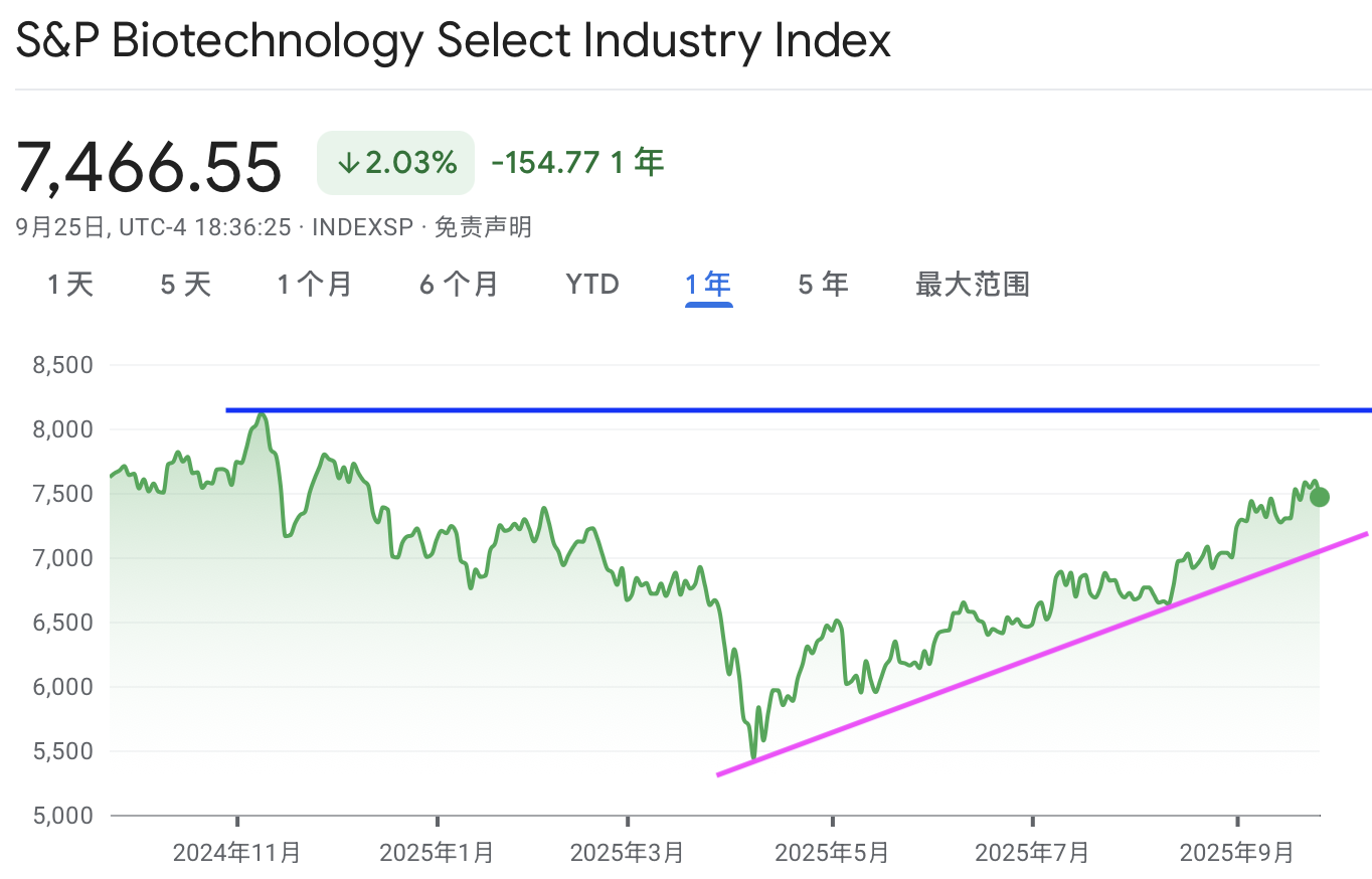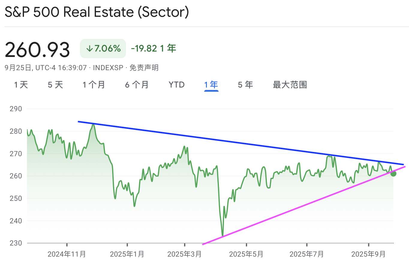 标普房地产最近陷入盘整期,形成对称三角形,后市方向不明,最近一直在中间位置横盘震荡。标普生物最近反转向上,周四下跌,暂时没有改变上行趋势。