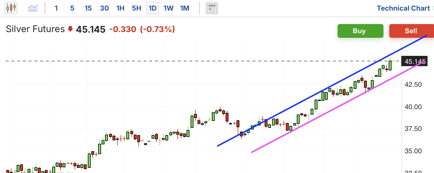 黄金和白银此前长时间盘整,最近突然拉升,突破关键压力位,进入上升通道中。黄金从通道压力位回落,但没有跌破支撑。