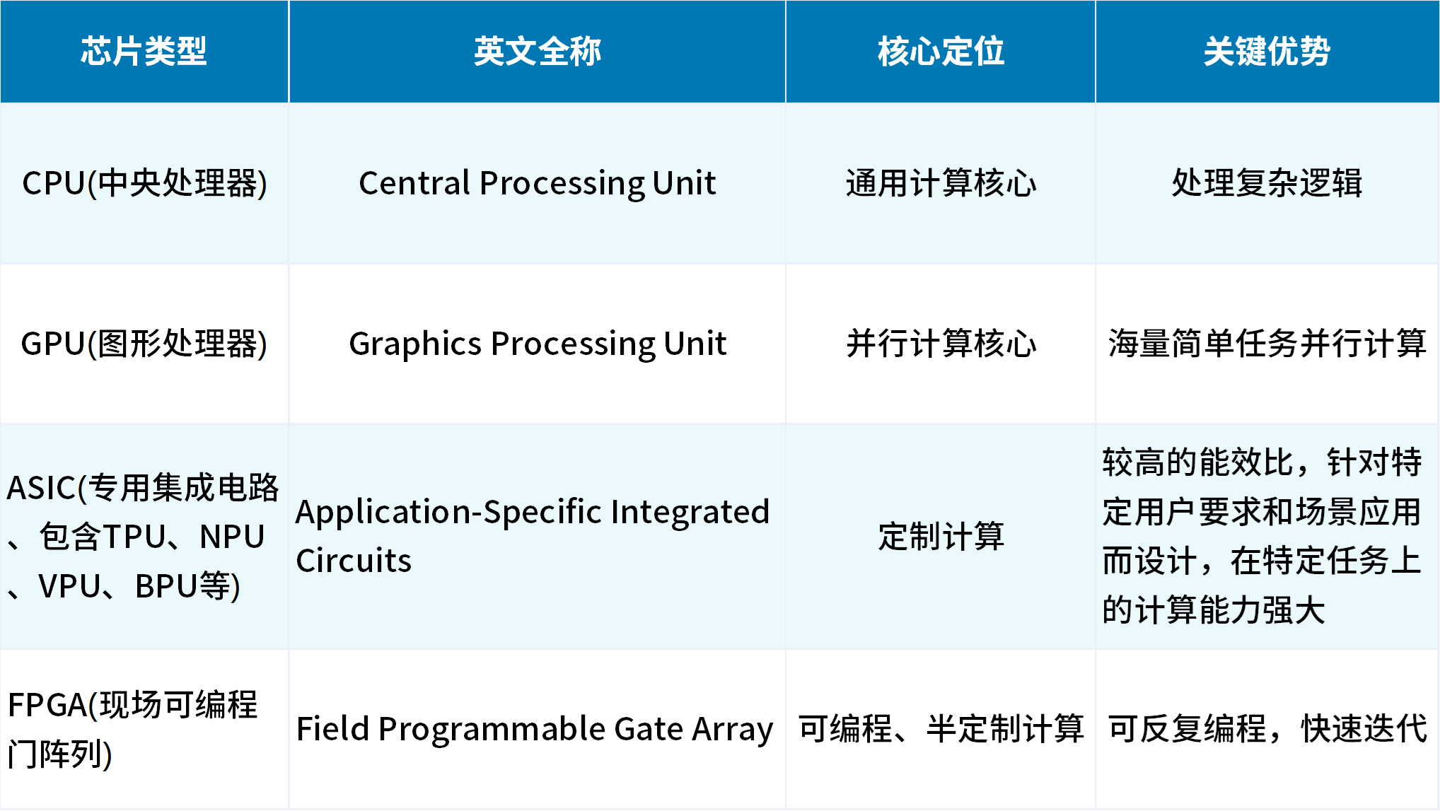 本期,我们聚焦算力产业链的上游——芯片,主要负责数据的计算,包括CPU、GPU、ASIC、FPGA等。它们有的擅长“多面手”工作,能处理各种复杂任务,有的专攻单一领域,把一件事做到极致。