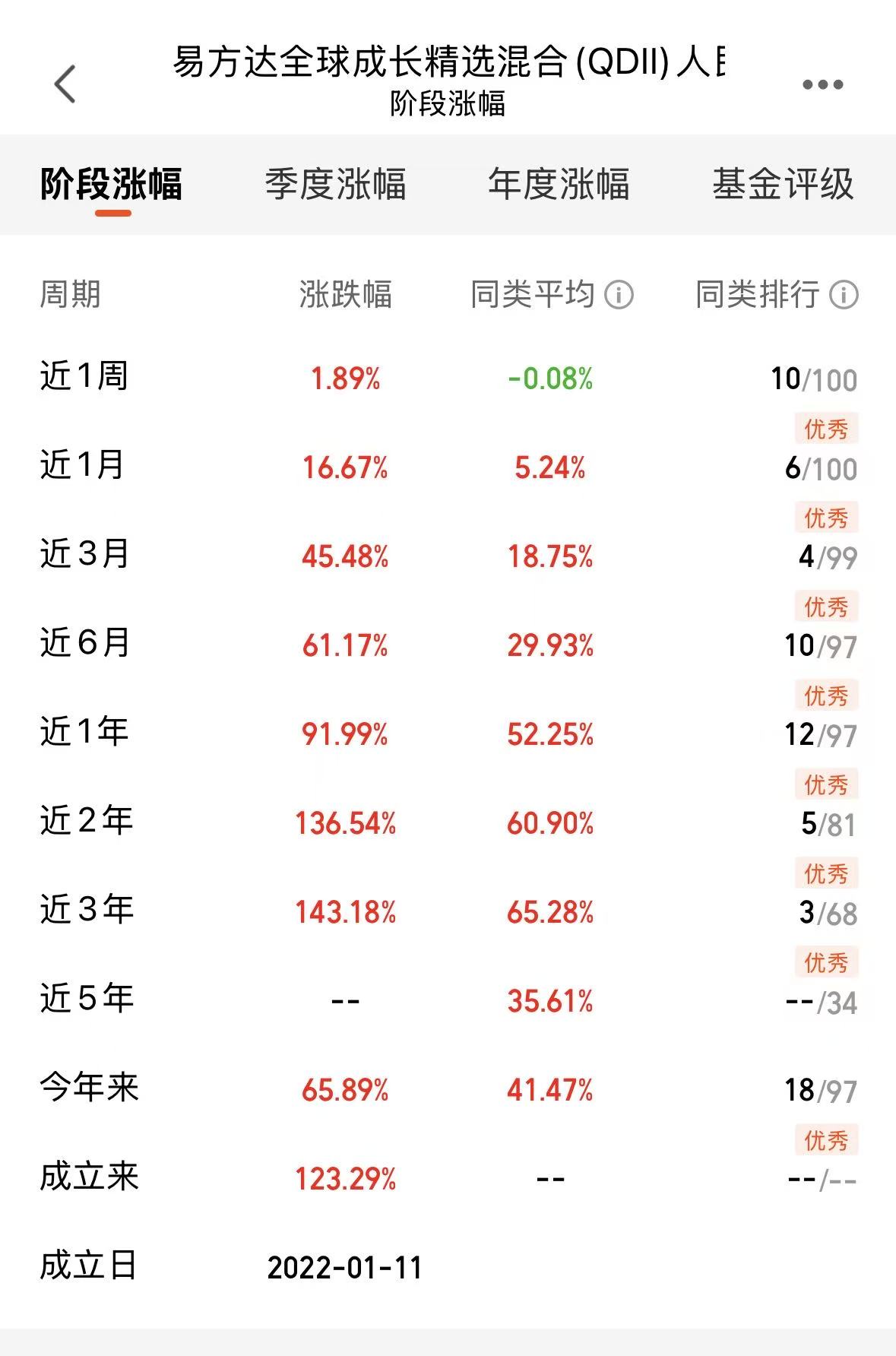 今天给思远跌麻了,账户绿油油啊!大科技普跌,我持仓的也都是这个方向。看了一下$易方达全球成长精选混合(QDII)人民币C(OTCFUND|012922)$的业绩要好很多啊,近一周1.89%,同类平均-0.08%,优秀!近一月16.67%,近三月45.48%,给力,因为策略是全球基,A股美股港股都能买,现在大科技确实高位了,需要经理这样的调仓高手,才能在震荡市场中稳住。