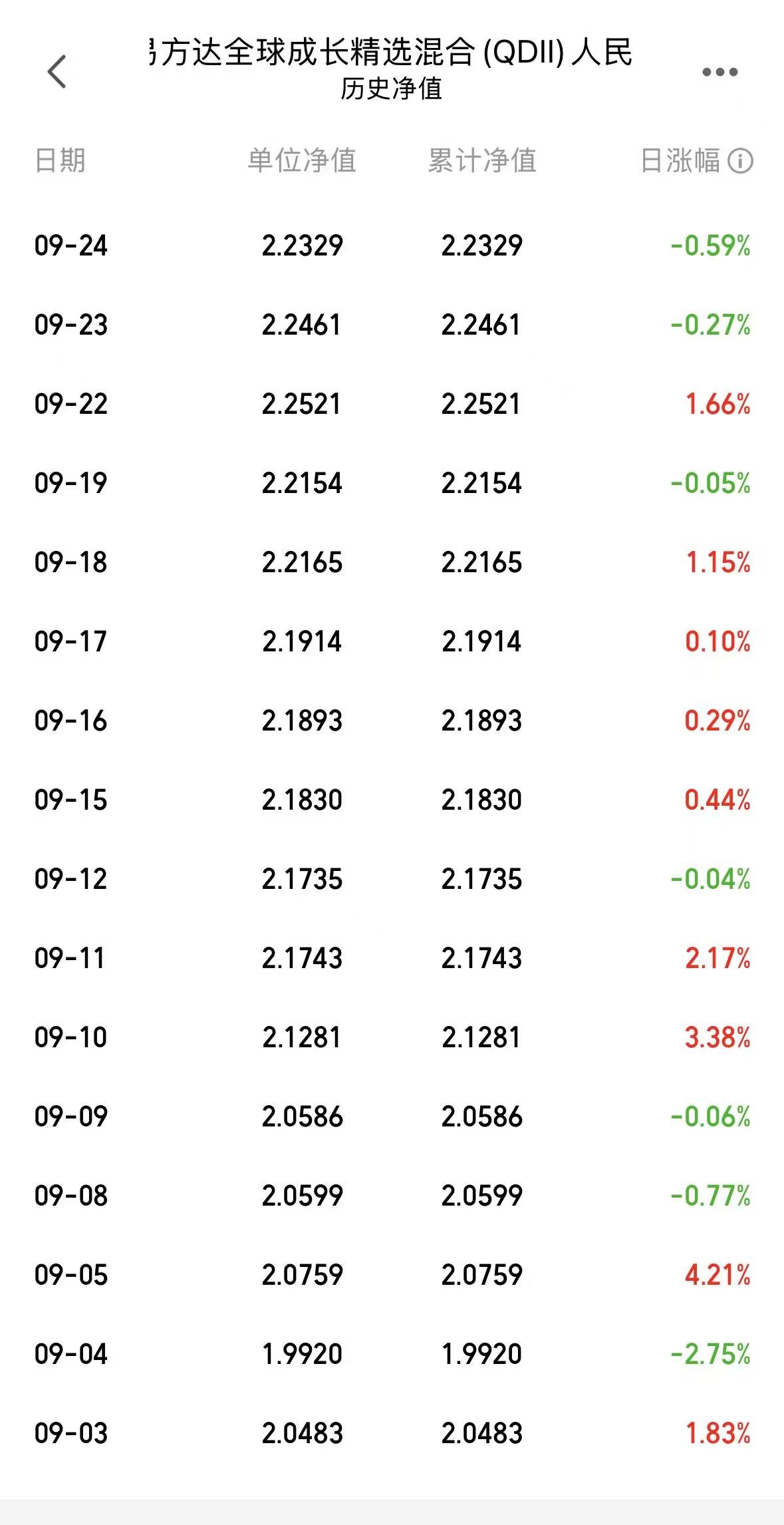 隔夜美股继续调整,纳指跌了3天了,对比了一下这个跌幅,$易方达全球成长精选混合(QDII)人民币C(OTCFUND|012922)$跌的是要少些,这个是因为策略是全球基,也就是说持仓里面不只有美股,还有港股和A股的配置,经理非常有大局观,会根据行情来进行调仓,下面是近期的净值表现,非常明显的红多。