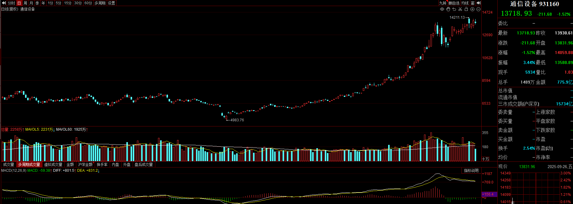 通信设备也是高位震荡,指数超跌1%,附图MACD死叉向下,短期的多头力量有所减弱,所以我这次计划在国庆节做个减法调仓。