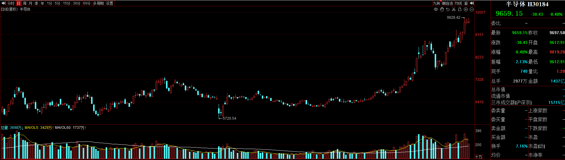 半导体在高位窄幅震荡,目前指数微微翻绿,技术面来看,短期行情有回踩5日均线的风险,这波回踩是机会,附图MACD金叉向上就已经证明了下方的支撑力度。消息面上,特朗普政府计划要求芯片公司在美国生产的产品数量与其客户从海外进口的半导体数量相同,长期不能达到1:1比例的公司将必须支付关税。川普又来搞乱了,这不是又加速了我们国产替代的进程吗?所以对于半导体的长线投资,我是和大家长统一战线的。
