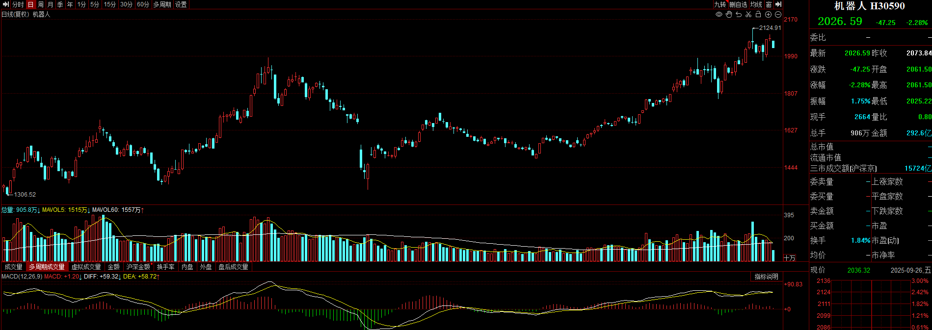 机器人震荡走低,指数超跌2%,日线回踩10日均线的支撑,附图MACD快慢线粘合,短期多头趋势减弱,我的机器人仓位比较重,今日做点减法。
