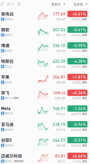 【重仓涨跌】昨日华宝纳斯达克精选前十大重仓股4涨6跌,美元兑人民币中间价↑0.06%(重仓股涨跌情况仅供参考,不代表当前基金业绩表现,还请以每日更新的实际基金净值为准)