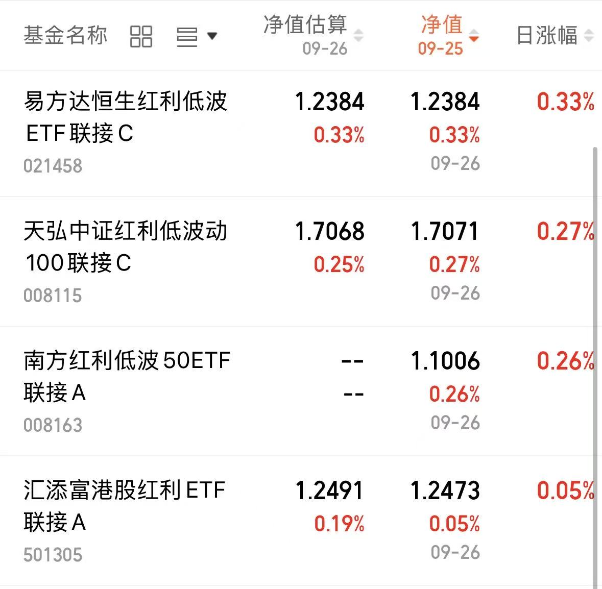 宝子们跌麻了呀,大科技给我绿的没眼看。幸亏红利这头红了有点安慰,$易方达恒生红利低波ETF联接C(OTCFUND|021458)$更新+0.33%,这只是港股红利,涨幅要高些!
