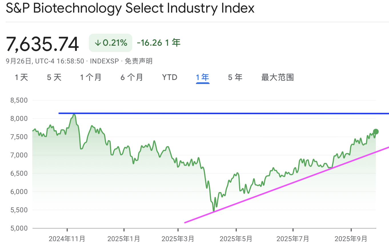 标普房地产最近陷入盘整期,一直在箱体中横盘震荡,后市方向不明。标普生物最近反转向上,目前为强势上行趋势,距离前高仍有上行空间。