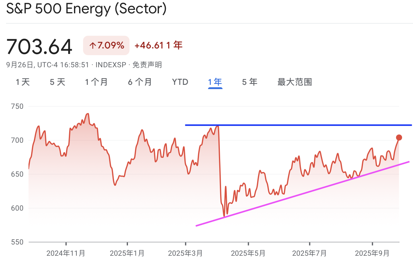 原油近期位于最低点支撑位横盘震荡,这几日反弹,突破下跌趋势,还不能确定回升。能源和油气最近反转向上,后受阻震荡,最近几日突破前高压力位,趋势反转向上,上方另一压力位将至。