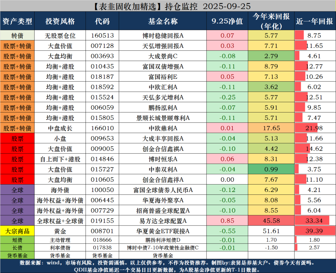 $表韭全球资产配置$ $表韭纯纯的债$ $表韭固收加精选$
