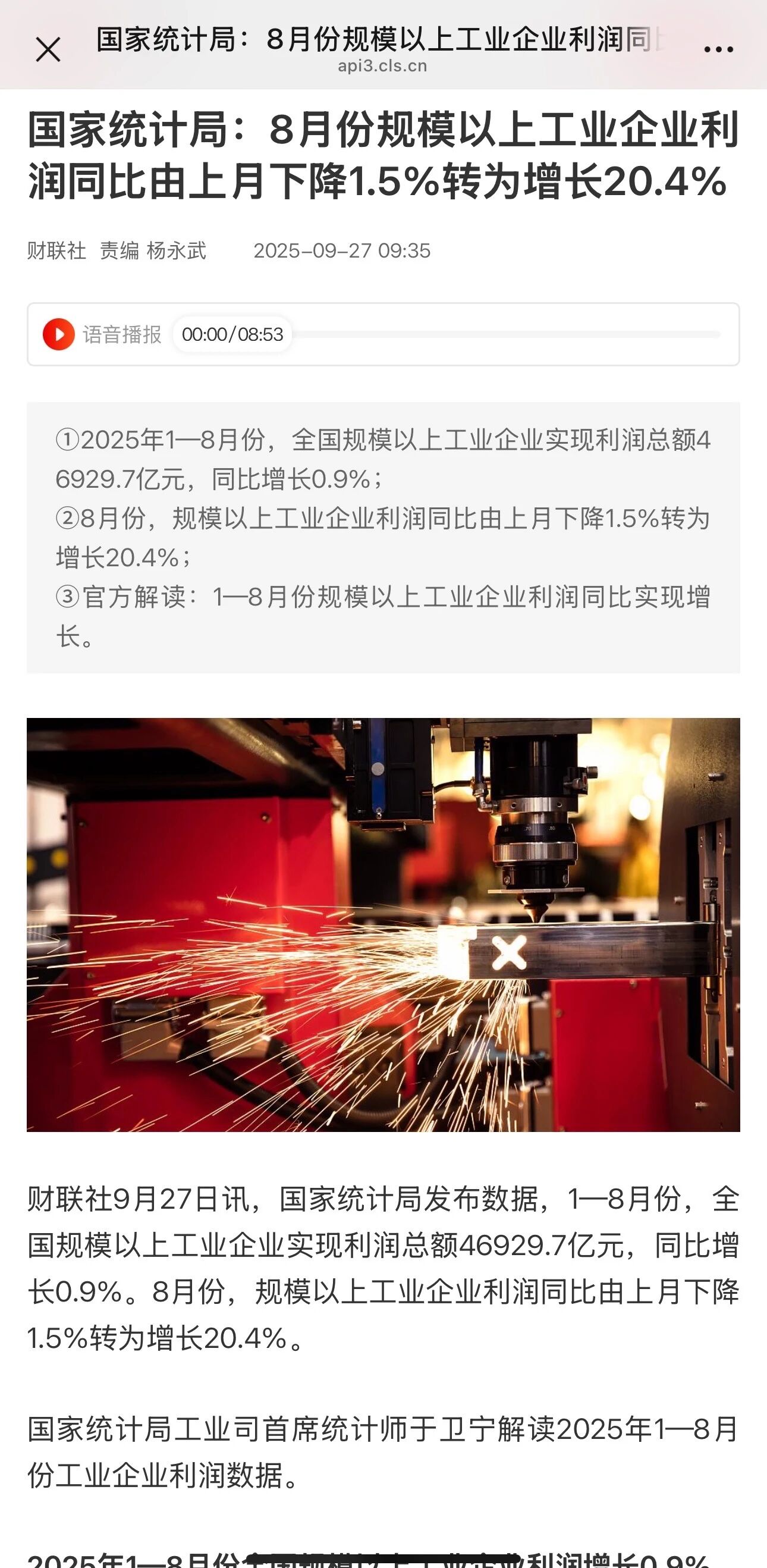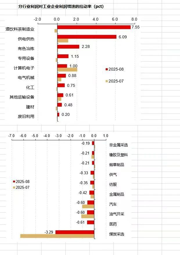 看了长江证券的测算,工业企业利润中食品饮料贡献了快一半的利润增长,应该说是老登立功了,当然去年8月极低的基数肯定是主要原因,另外就是反内卷把钢铁煤炭产业链拉起来了。
