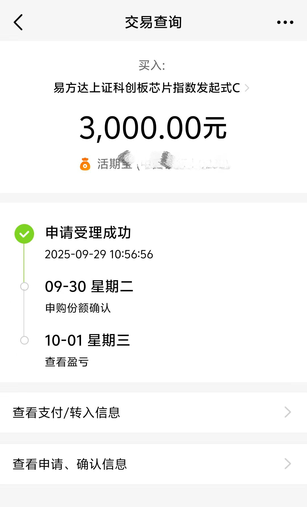大盘今天拉升上涨, 科创芯片板块表现还不错,盘中回落又拉升翻红了,目前小涨,英伟达注资OpenAI事件热度高,后续可能还有行情催化。$易方达上证科创板芯片指数发起式C(OTCFUND|020671)$近一月涨了17.89%,近三个月涨了57.34%,近一年涨了146.92%,不论是短期还是中长期业绩都很不错,看好这个方向,我今天先加仓3000元!