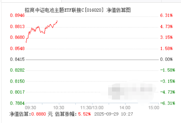 家人们什么情况呀~本来还是准备节前空仓的,我看$招商中证电池主题ETF联接C(OTCFUND|016020)$目前估值收涨5.52%,这里固态电池”概念股占比4成,“储能概念”占比达6成,这一波上涨行情也太香了吧~我感觉现如今国内头部储能系统集成商对未来储能需求指引超预期之下,市场赛道轮动更多的资金看好电池板块,感觉10月的行情还是可以继续期待这里的~节前补仓了。