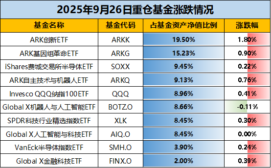 【重仓涨跌】根据基金2025年二季报披露,重仓基金中3只为“木头姐”凯茜伍德旗下聚焦于美股前沿科技的基金,合计占比达43.86%。