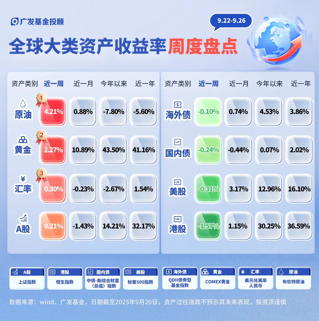 上周,受到国际地缘政治紧张局势以及OPEC+减产预期的影响,油价持续表现强劲,涨超4%;第二名的是,在美联储降息预期升温+全球避险情绪上升的背景下持续上涨的黄金,周涨超2%。