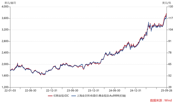 截至上周五(9月26日),伦敦现货黄金报收3,758.78美元/盎司,上周累计上涨74.13美元/盎司,涨幅2.01%。上周金价突破上行并创新高。金价最高上行至3,791.08美元/盎司,最低下探至3,683.28美元/盎司。回顾上周以来海外主要市场动态:第一次降息已经落地,本周美联储官员表态出现分歧、但整体偏鸽,后续降息预期仍然存在;此外,地缘政治风险扩大、美国政府短期面临停摆风险等因素,有望驱动金价上行;中长期美联储开启降息周期+海外宏观政策不确定性加剧+ 全球“去美元化”趋势对金价依然构成利好,可持续关注,或可考虑逢低分批布局。关注本周美国9月失业率、美国9月非农就业报告。