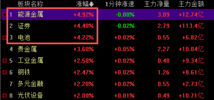 板块方面,能源金属大涨4.92%,这方面催化有两点,其一是伦敦金突破站上3800关口,其二是伦敦银强势上涨,即将突破历史新高,带动板块整体走强。证券大涨4.40%,作为牛市急先锋和老登股的代表,一根大阳线牵动市场的神经,是否是五浪的开启,不轻易下结论,还需要时间验证。电池大涨4.22%,待会重点聊。