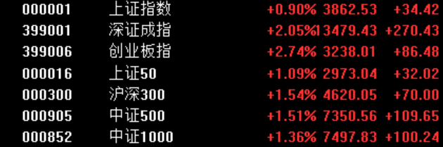 资金提前抢跑,行情比较给力,三大指数和四大宽基指数集体收涨,今天吃肉了吧。