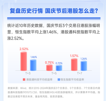 在节前资金面季节性收紧、资金减仓规避长假期间不确定性,以及节后政策博弈时间窗口开启的共同作用下,国庆长假前后市场往往会呈现先抑后扬的走势,即节前波动概率大、节后反弹概率大的特点。同样地,港股方面,我们也统计了近10年两个港股科技指数的节后走势平均涨幅,显示长假前逢低布局港股通科技指数的收益胜率相对较高。