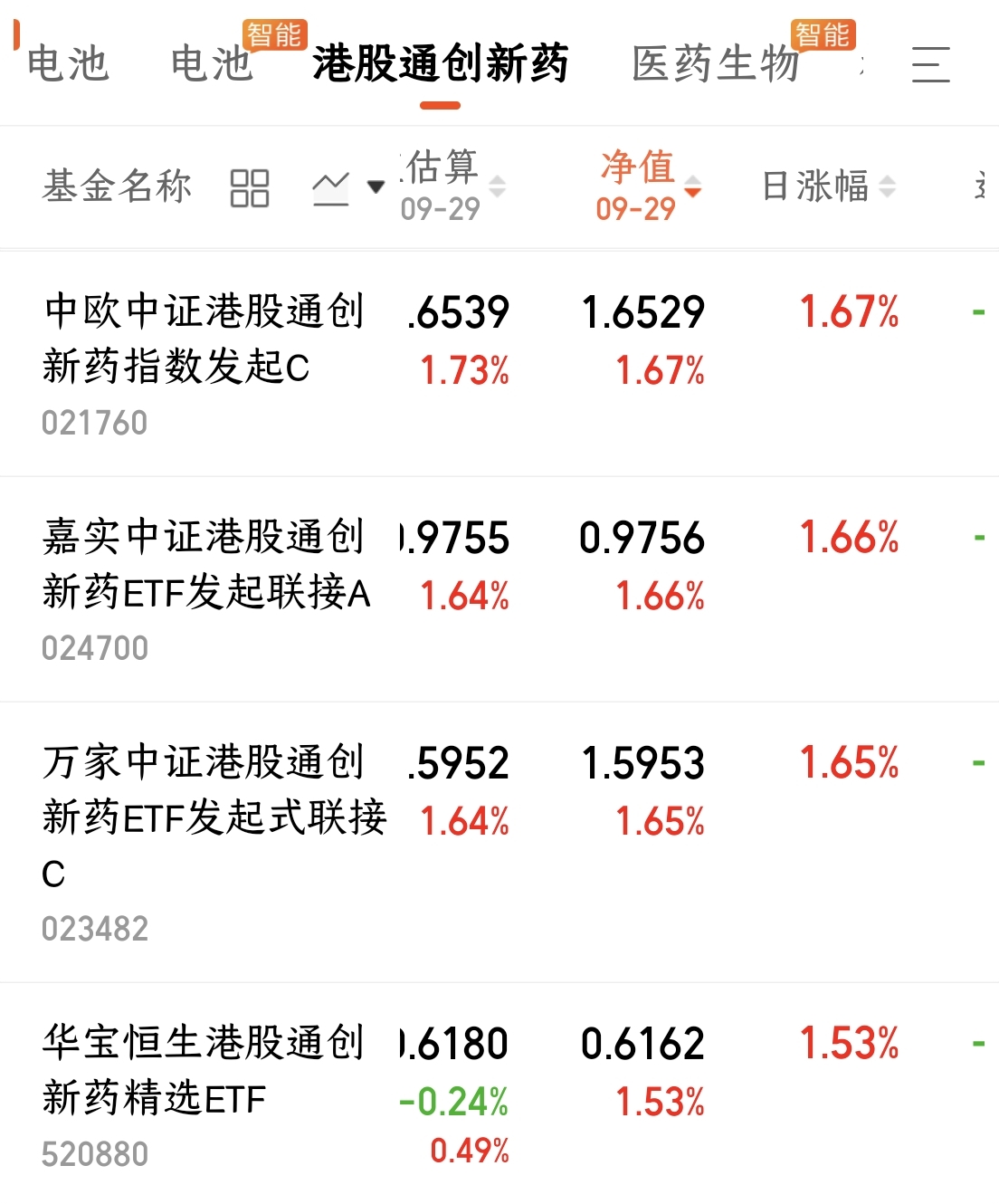 $嘉实中证港股通创新药ETF发起联接A(OTCFUND|024700)$今日上涨了1.66%