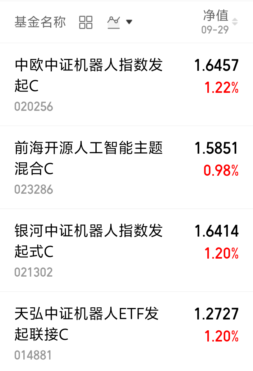 $天弘中证机器人ETF发起联接C(OTCFUND|014881)$今天涨了1.20%