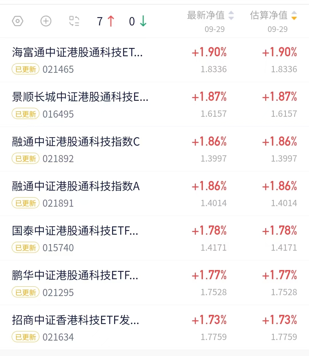 受降息的利好,我看近期港股科技赛道开始回暖发力,咱就说这一波上升行情谁能不爱呀~我看$海富通中证港股通科技ETF发起联接C(OTCFUND|021465)$今天收涨1.90%,这里做为跟踪指数基超额收益明显,感觉更跟上上涨行情呀~