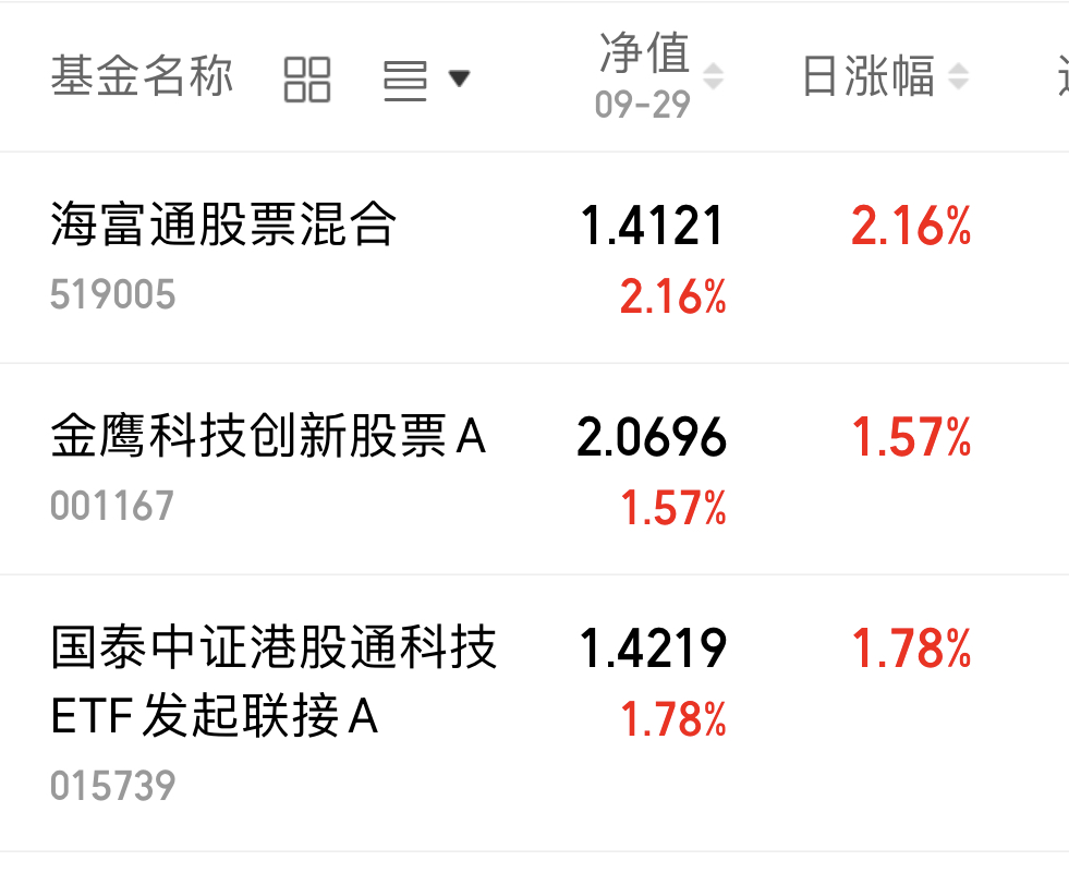 今天大盘三大指数集体收涨,新能源、科技板块发力带动人气。科技还是市场主线,上周才调整一天,今天就迎来反弹上涨,其中$海富通股票混合(OTCFUND|519005)$今晚上涨2.16%,表现优秀。