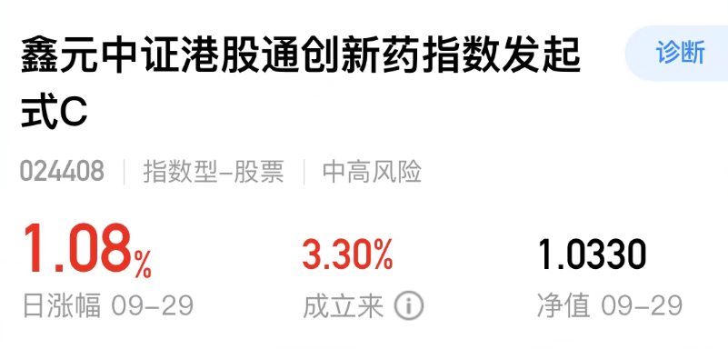 今天大A全天强势,早盘表现低迷的港股创新药,午后开始发力反弹最后翻红,今天没有拖后腿,表现不错,$鑫元中证港股通创新药指数发起式C(OTCFUND|024408)$净值更新+1.08%,反弹还挺给力,表现优秀!