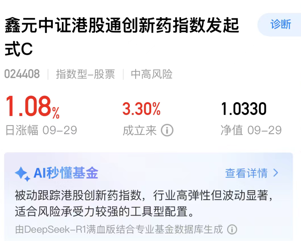 低迷了一段时间的港股创新药,今天触底反弹,$鑫元中证港股通创新药指数发起式C(OTCFUND|024408)$净值更新+1.08%,弹性不错,近期调整释放了风险,性价比更突出了,同时今年港股创新药板块的利好多,投资确定性高,消化风险后又将展开新一轮行情了!