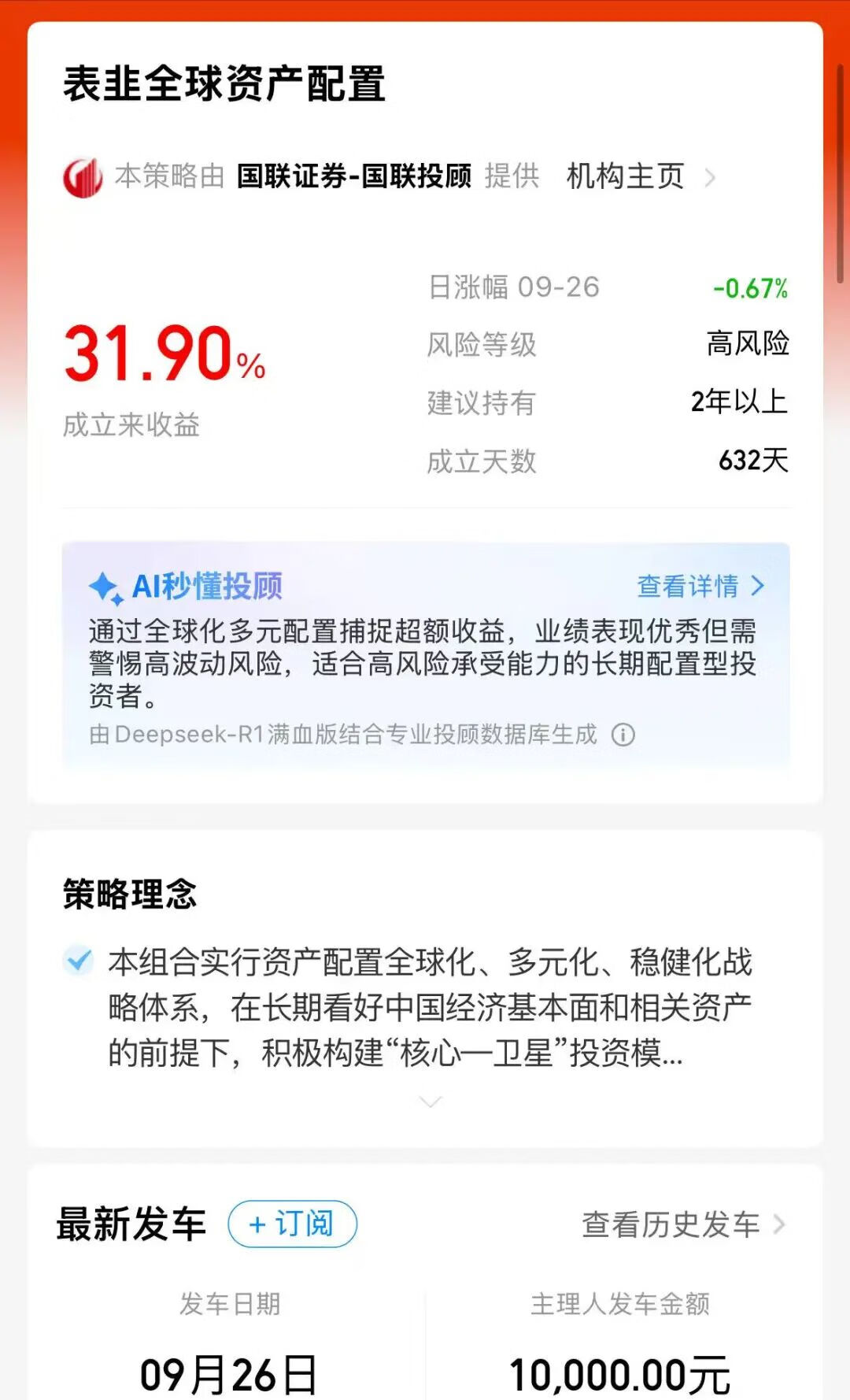 想一起跟「表韭全球资产配置」的小伙伴,平台包括天天基金,在平台搜索,「表韭」,就能看到结果了,具体请见,《必看,基金投顾的十问十答》。