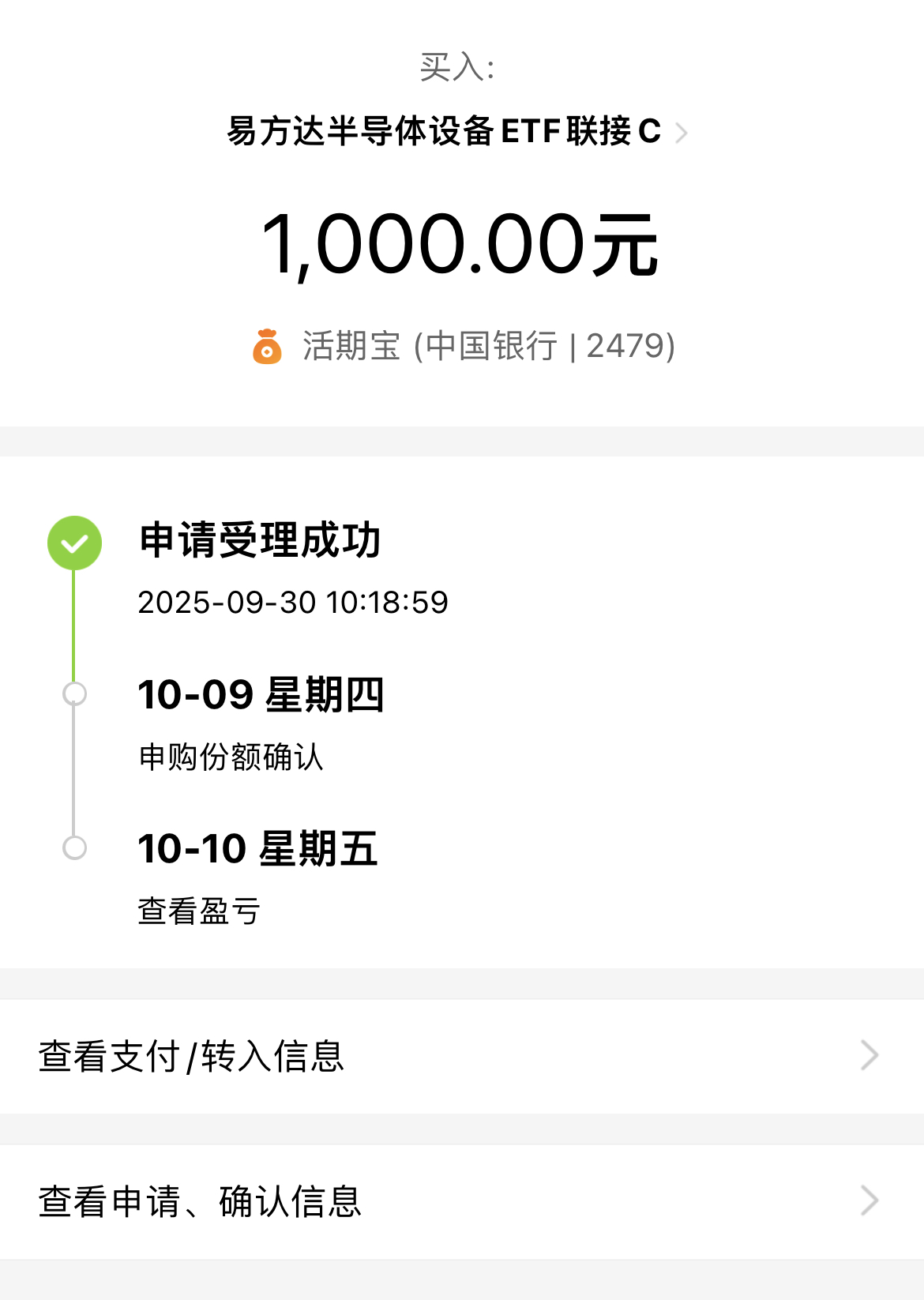半导体设备板块今天又拉涨,盛美上海、长川科技等龙头活跃。$易方达半导体设备ETF联接C(OTCFUND|021894)$这势头更猛,近一周涨14.30%,近三个月直接飙了45.30%,在芯片类基金里很亮眼。华为刚定了昇腾芯片迭代计划,2026年起量产新品,设备需求肯定跟着增。国产替代也在加速,我打算加仓1000元,借这只基金搭车,省心又能跟上板块红利。