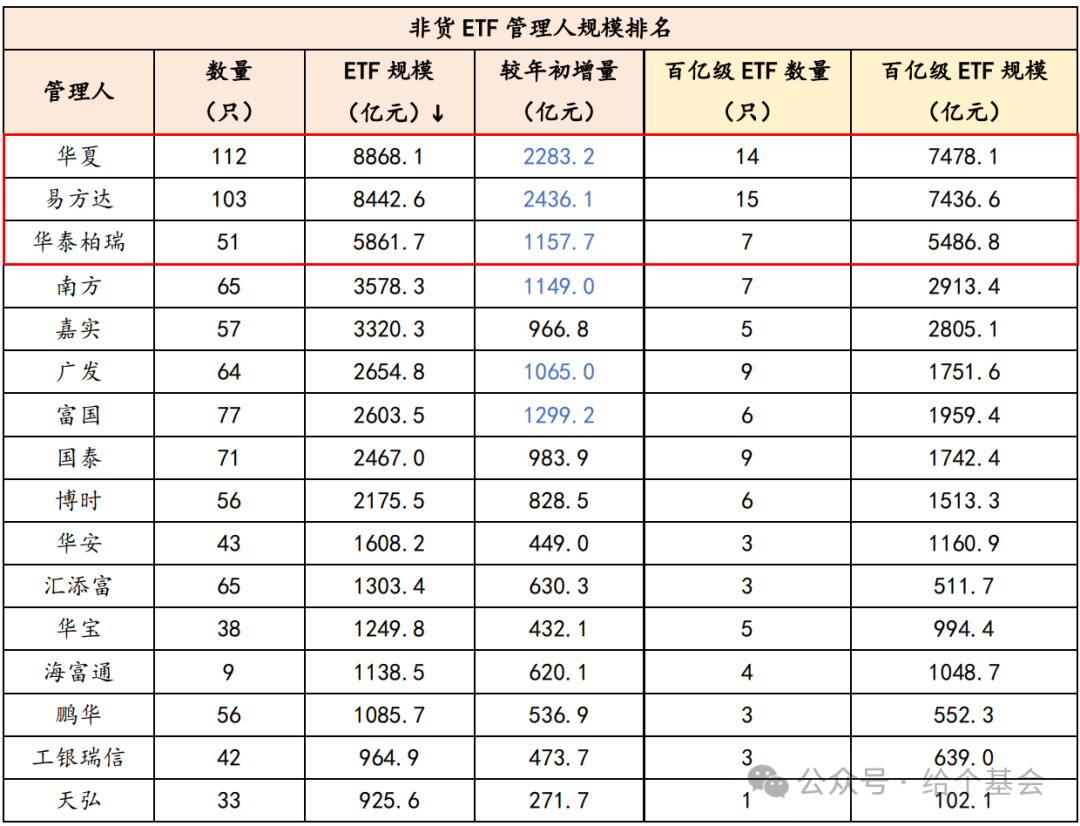 通俗来说,ETF总规模到千亿左右,才能算上桌的玩家;有一个百亿级别的ETF,才算是业务逻辑理顺。