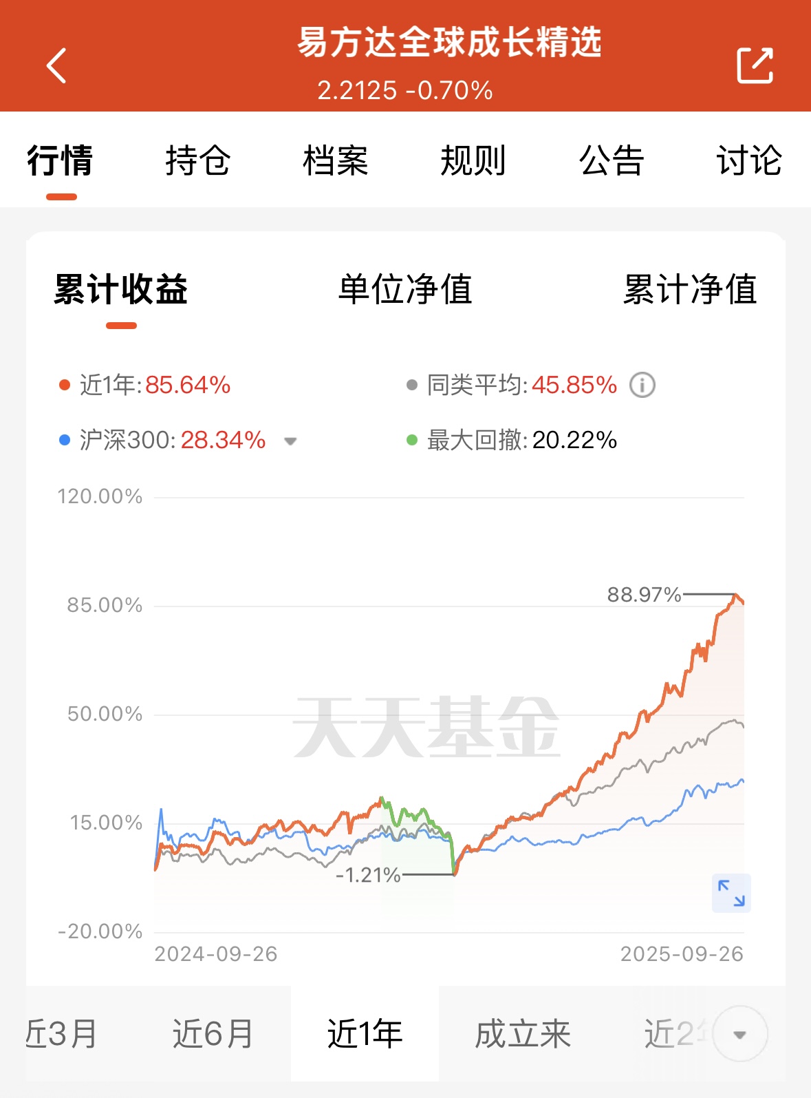我个人的话会选择持股过节,当然配置这块是以均衡为主了。$易方达全球成长精选混合(QDII)人民币C(OTCFUND|012922)$,近一年85.64%,这个业绩表现跑赢同类平均的45.85%,跑赢沪深300,就是因为配置方面更灵活,经理可以灵活调仓A股港股美股。