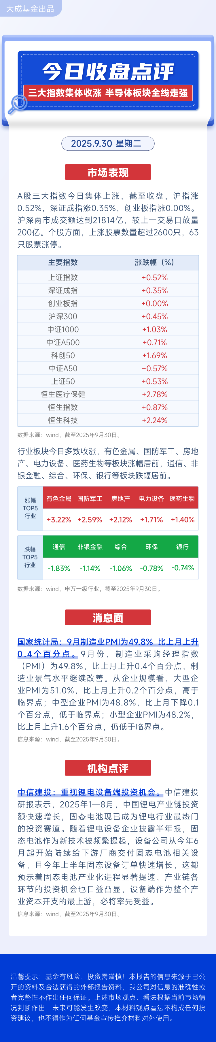 收盘点评:三大指数集体收涨,半导体板块全线走强