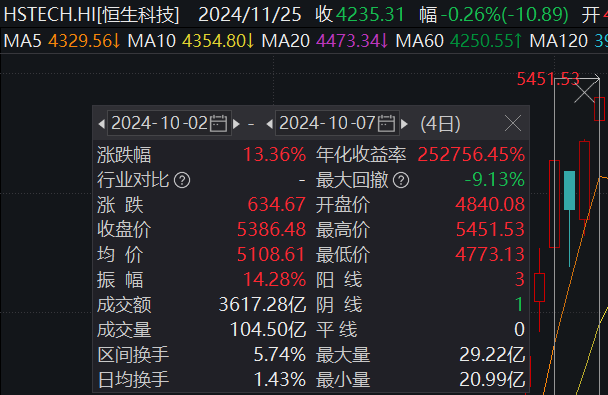 去年国庆期间,A股不开盘,恒生科技在10月2日到10月7日四个交易日累计上涨13.36%。当然这个比较多少有点刻舟求剑,去年的位置和情绪也和现在有很多不同。还是那句话,一两天的涨跌很难预测,等明天开盘了且看这些0阶导资金如何表演。